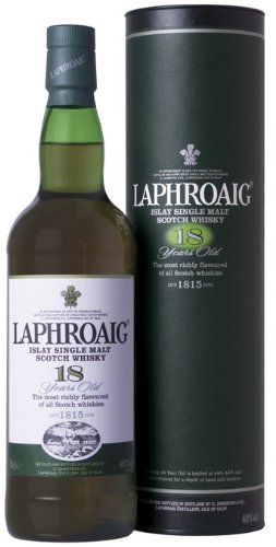 This 18 year old expression of Laphroaig is made in limited quantities each year and savoured by a fortunate few. A soft, sweet and spicy Islay peat smoke greets you when you first open the bottle. The immediate taste is an oak sweetness, from 18 years in the barrel. A faint hint of the sea can be detected, testimony to its time maturing on the remote island of Islay.96 Proof Single Malt Scotch